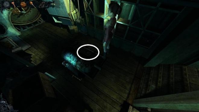 Przekręć wskazówki zegara, a w niewielkich drzwiczkach, pojawi się figurka kapitana. Przekręć wskazówkę kolejne dwa razy. Tym razem tą figurką będzie mechanik, trzymający w rękach kieszonkowy zegarek. Zabierz go. Przekręcaj zegar o kolejne dwie godziny, a po kolei będą ukazywały się figurki inżyniera, kucharza, a na koniec Fiony. Opuść to pomieszczenie i udaj się ponownie do jadalni. Do okrągłego rondelka z dziurkami włóż szary materiał znaleziony w kratce wentylacyjnej w kajucie kapitana, używając go jako izolacji. Umieść rozgrzany przedmiot na pękniętej rurze. Przejdź do schodów i udaj się na górę. Przejdź na schody w lewo. Już nie ma tam pary nie pozwalającej wejść na górę. Wejdź zatem na popękane, drewniane schody i wkrocz do nowej lokacji.