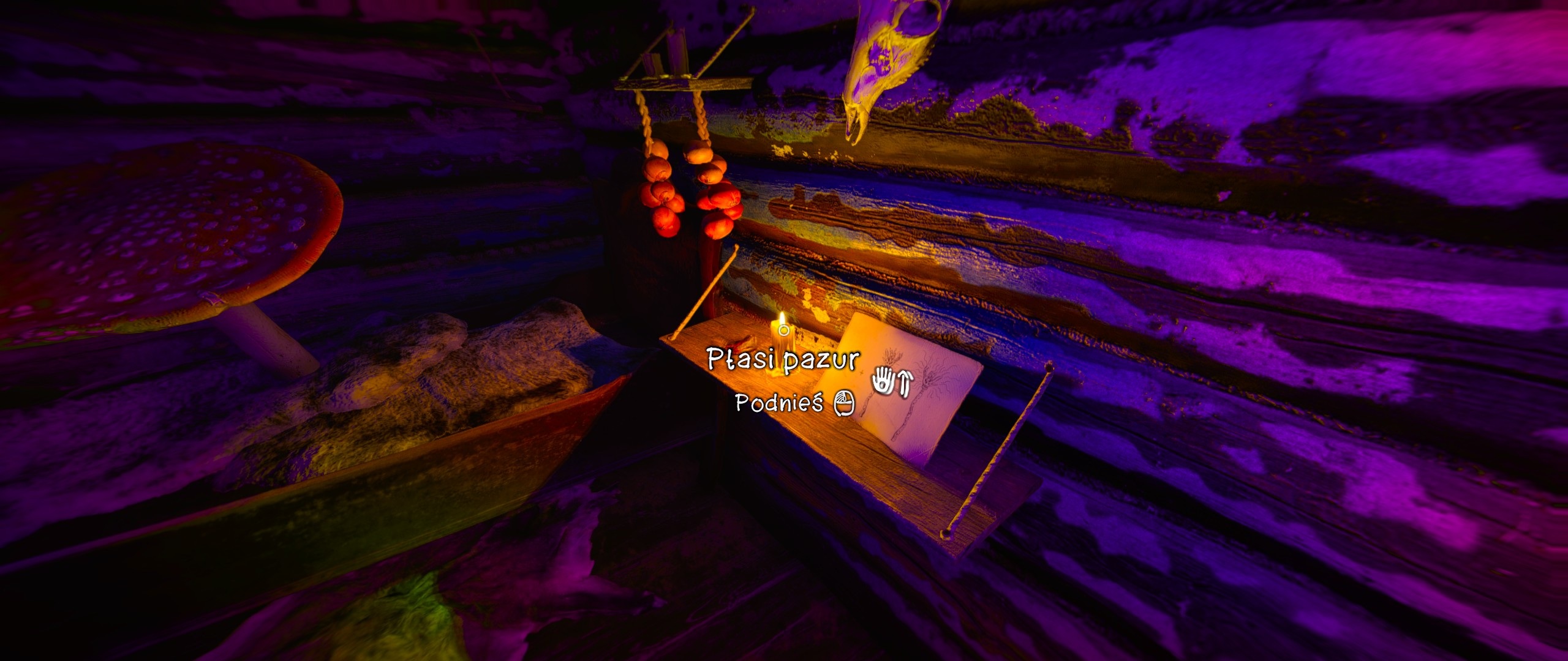 Zabieramy łopatę chlebową, która stoi nieopodal, zerkamy na przypalony rysunek, przedstawiający zmorę gnębiącą człowieka. Zerkamy na kołyskę, do której przyczepiona jest czerwona wstążka oraz na mniszek lekarski, który leży na oknie. Wracamy do pokoju z piecem i odkładamy łopatę chlebową na miejsce, po czym stabilizujemy niestabilną ścieżkę losu.