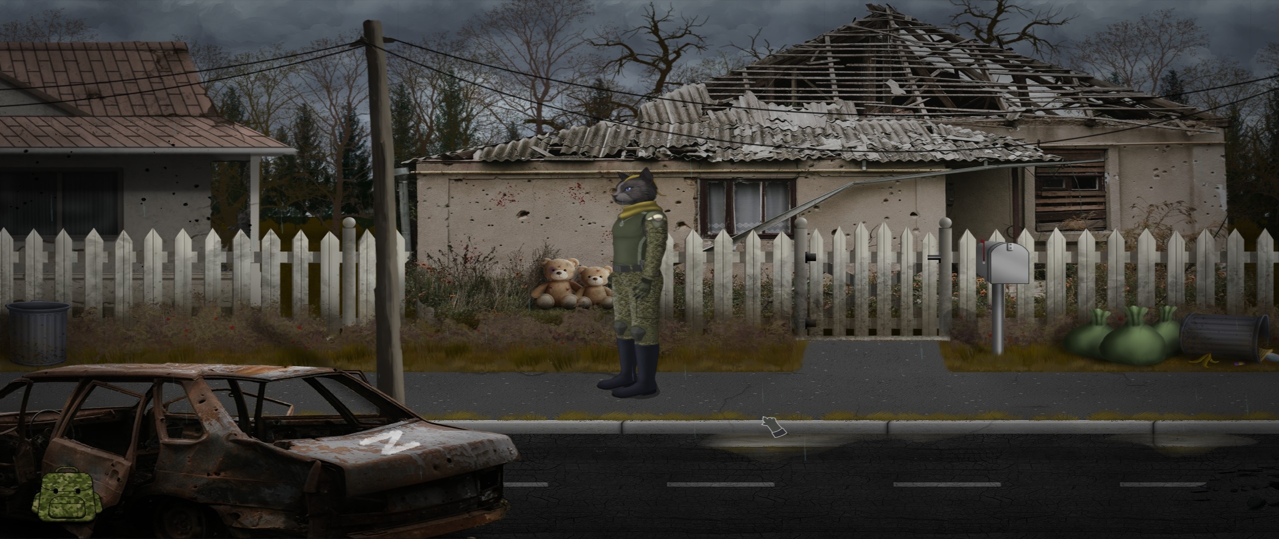 Gra wiele odniesień do brutalności wojennego czasu ma nie tylko dzięki grafice, która mocno to zarysowuje, pokazując propagandowe plakaty, wycinki z gazet, leżące na ulicach bomby, zniszczone domy czy osierocone misie.
